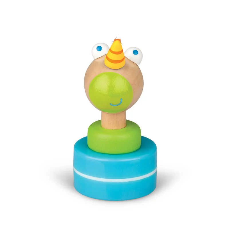 Wooden Unicorn or Dragon Ink Stampers that come with a pre-inked pad.